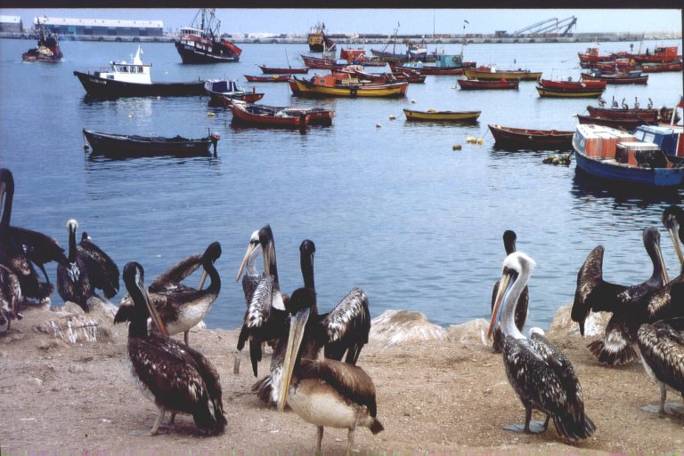 Der Hafen von Arica. Pelikane gibt es hier reichlich.